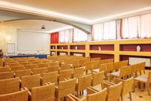 - sale riunioni di diversa capienza attrezzate con videoproiettore e microfoni: una sala da 70/80 posti con sedie a platea, una da 40/45 posti e una piccola saletta non attrezzata da una 20ina di posti. Tutte le sale dispongono di aria condizionata e bar nelle immediate vicinanze per coffee break.